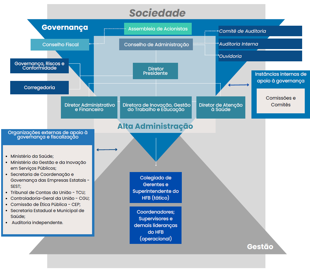 É responsável pela decisão estratégica da Unidade Prestadora de Contas (UPC). Faz parte da composição deste conselho um representante dos trabalhadores, eleito em pleito específico, que tem poder decisório igual aos demais membros. Dentre suas competências destacam-se: eleger a Diretoria; a fiscalização da gestão dos Diretores; a convocação da Assembleia Geral de Acionistas; manifestação sobre o Relatório da Administração conforme a Lei nº 6.404/76; a aprovação do planejamento estratégico, orçamentos básicos da UPC, do Regimento Interno e o Regulamento de Pessoas e respectivas alterações. A regulamentação dessa participação, consta na Lei nº 12.353, de 28 de dezembro de 2010, e nos estatutos sociais do Hospital Nossa Senhora da Conceição S.A., em seu artigo 17, § 3º.