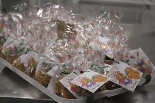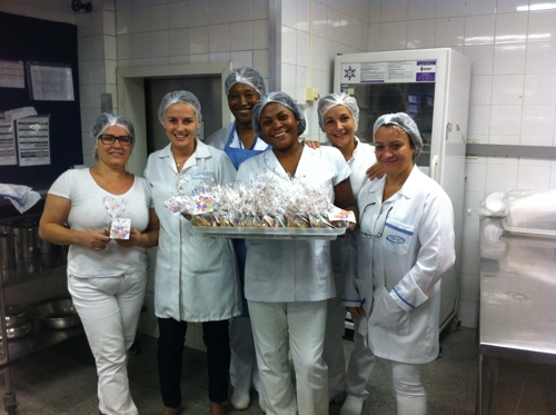 Os biscoitos foram feitos pela cozinheira Carmen Susana Silva, que trabalha há 27 anos no HCC, com suporte da equipe de produção da manhã. As responsáveis pela supervisão foram a nutricionista Fernanda de Castro Lin e a técnica em nutrição Ariane Tavares. Já o grupo de trabalho da tarde deu suporte para a nutricionista Cristine Maria Bertoline e para as técnicas em nutrição Letícia Quinta Rodrigues e Elizete Korpaliski, que embalaram e decoraram os pacotes.