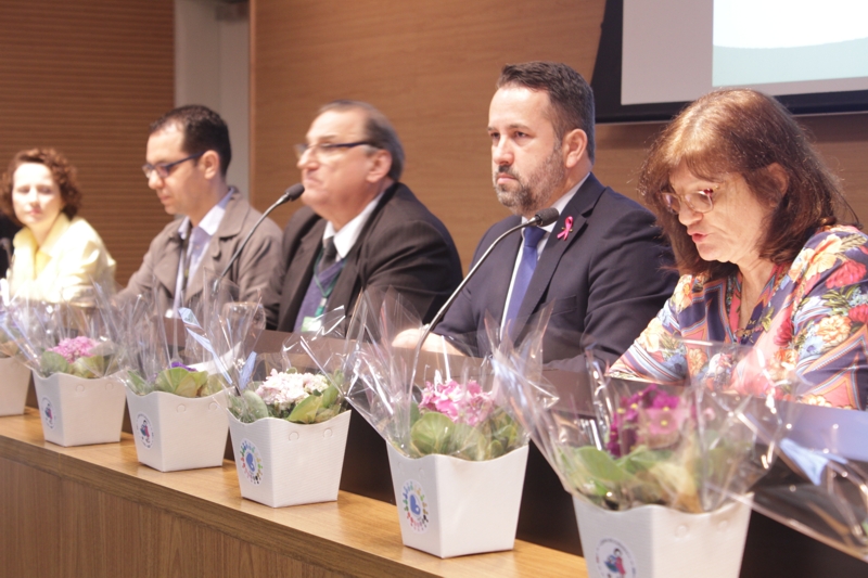 José Ricardo Agliardi Silveira, diretor administrativo e financeiro do GHC, começou destacando que o fortalecimento do Sistema Único de Saúde (SUS) se efetiva através do trabalho em equipe. Por isso a importância de equipes multidisciplinares, com a diversidade de vocações da área da saúde e processos de trabalho com relações horizontais. Parabenizou também a organização do evento pela abordagem de temas importantes para a assistência e fez uma singela homenagem à enfermeira Lisete Ambrosi pelo trabalho realizado nos últimos anos na linha de cuidado.