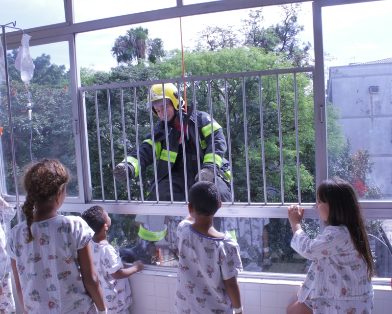 A ação dos bombeiros visou mostrar um pouco do trabalho dos "heróis da vida real". Eles desceram o paredão de forma controlada, por meio de cordas, e acompanhados dos demais equipamentos de segurança. Durante a descida os profissionais interagiram com as crianças que estavam acompanhando a visita pelas janelas do hospital. O importante foi demonstrar como funciona uma operação tática, de estratégia militar.