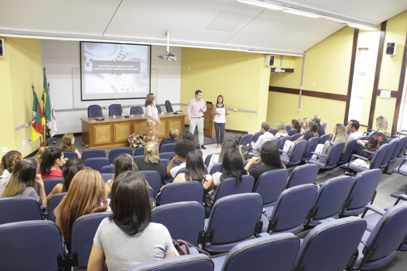 A convite da Escola de Enfermagem da Universidade Federal do Rio Grande do Sul (UFRGS), o médico internista do Hospital Nossa Senhora da Conceição (HNSC) André Wajner e a enfermeira Jociele Gheno participaram, no dia 1º de novembro, da atividade "Talk Show" sobre "Escritório de Gestão de Altas (EGA)" para os estudantes do sétimo semestre de Enfermagem da UFRGS.