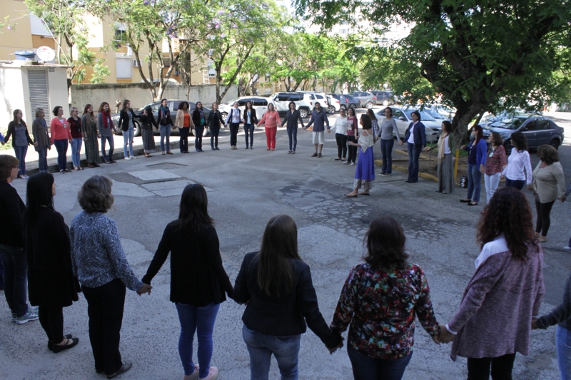 No final da abertura, a nutricionista da Saúde Comunitária Lena Azevedo convidou todos presentes no evento a participarem de uma dança circular, no pátio em frente ao Centro Administrativo GHC. “A dança circular sagrada é um convite a nossa totalidade. Presenciaremos a integração de nossas mentes, de nossos corações, de nossos corpos e de nossa espiritualidade. Existe uma energia que circula na roda”, explica Lena Azevedo.
