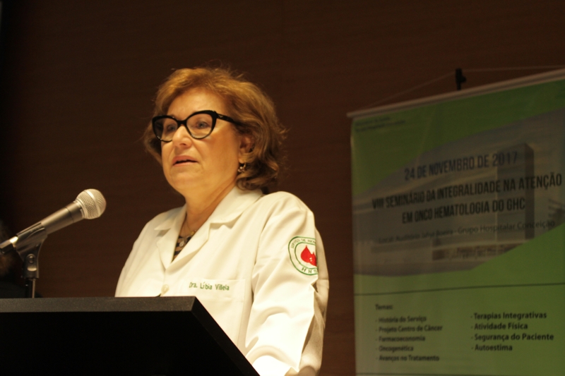 A primeira palestra do seminário teve como tema a história da Hematologia e da Oncologia do GHC, com a médica do serviço de Hematologia do Hospital Conceição Líbia Villela. Ela homenageou e agradeceu todos os médicos que participaram da história da Onco-Hematologia da instituição e que agora atuam em outros hospitais do Estado. Emocionada, ela relatou os mais de 30 anos de trabalho na área. “Temos que comemorar todos estes anos de conquistas do nosso serviço, que hoje é referência no Estado, tanto em Oncologia quanto Hematologia”, contou Líbia.