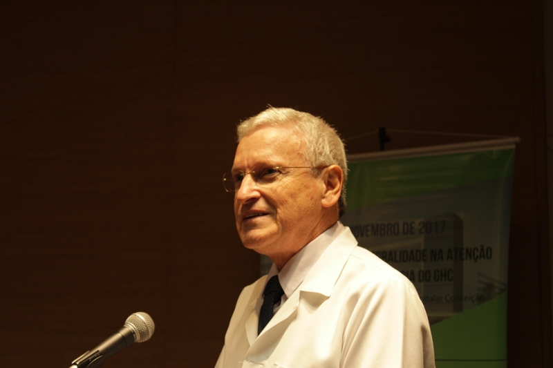 O diretor técnico do GHC, Mauro Sparta, também homenageou todas as pessoas envolvidas e que trabalharam no processo da construção do novo prédio de Oncologia do GHC, uma necessidade do hospital desde 2008. “Temos um grupo de profissionais com muita qualificação técnica, em todas as áreas”, enfatizou o diretor. O coordenador do Serviço de Onco-Hematologia do Hospital Conceição, Marcelo Capra, comentou sobre a importância do novo prédio, que irá dobrar a área física e agregar dois novos serviços, a radioterapia e o transplante de medula. “Este ano, o seminário vai resgatar um pouco da história dos serviços de Oncologia e Hematologia, projetando o futuro, resgatando o passado e homenageando todos que já trabalharam aqui”, comentou Capra.