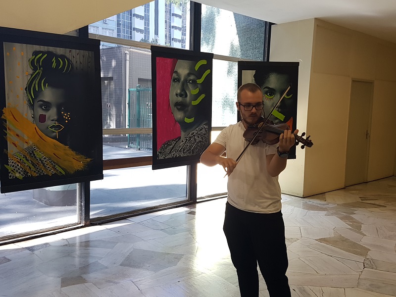 Após a abertura, o músico Derick Eliezer Jagnow encantou o público com seu violino. A exposição ficará no saguão de entrada do Hospital Fêmina até o dia 29 de março.