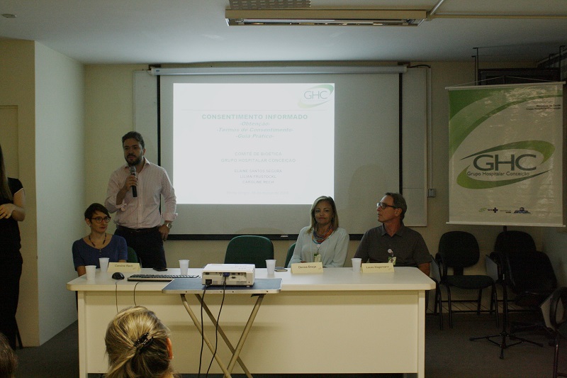 Com objetivo de apresentar o processo de consentimento do paciente, os termos de uso do Grupo Hospitalar Conceição e o Guia Prático de Consentimento Informado do GHC, foi realizado pelo Comitê de Bioética do GHC na última sexta-feira, 16 de março, encontro com funcionários do Hospital Fêmina.
