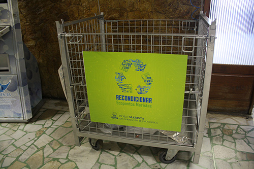 Localizado ao lado da entrada do Espaço Inter-Religioso do Hospital Conceição, o Ecoponto (gaiola para lixo eletrônico) tem a maior parte do lixo eletrônico recolhido encaminhada à reciclagem para possível retorno à indústria por meio da logística reversa, evitando a extração de recursos da natureza. O restante é recondicionado no próprio Polo Marista, transformando-se em robôs, meta-arte e novos computadores, prontos para serem utilizados novamente.