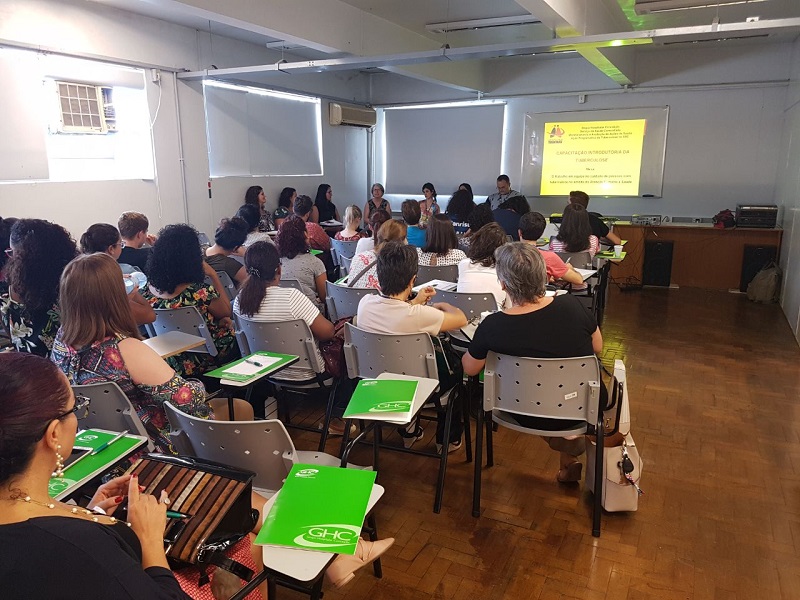 Foi realizada pela Gerência de Saúde Comunitária do Grupo Hospitalar Conceição (GHC), juntamente com o Serviço de Pneumologia do Hospital Conceição (HNSC), na tarde desta quinta-feira, 5 de abril, uma "Capacitação em tuberculose para o trabalho em equipe no âmbito da Atenção Primária à Saúde", na Sala 4 da Escola GHC.