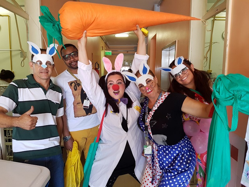 Para alegrar as crianças, representantes da Liga da Alegria, grupo voluntário composto por funcionários do Grupo Hospitalar Conceição (GHC), entregaram presentes para os pequenos na manhã dessa terça-feira, 10 de abril, no Hospital Criança Conceição.