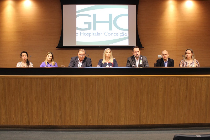 A mesa de abertura contou com a presença da diretora-superintendente do GHC, Adriana Denise Acker, do diretor técnico, Mauro Sparta, do diretor administrativo e financeiro, José Ricardo Agliardi Silveira, e os coordenadores do Controle de Infecção Hospitalar dos hospitais do Grupo Conceição, Patrícia Reis Pereira do Hospital Conceição, Vicente Sperb Antonello do Hospital Fêmina, Nara Beloni Sarabia do Hospital Cristo Redentor e Márcia Martins Marquesan do Hospital Criança Conceição.