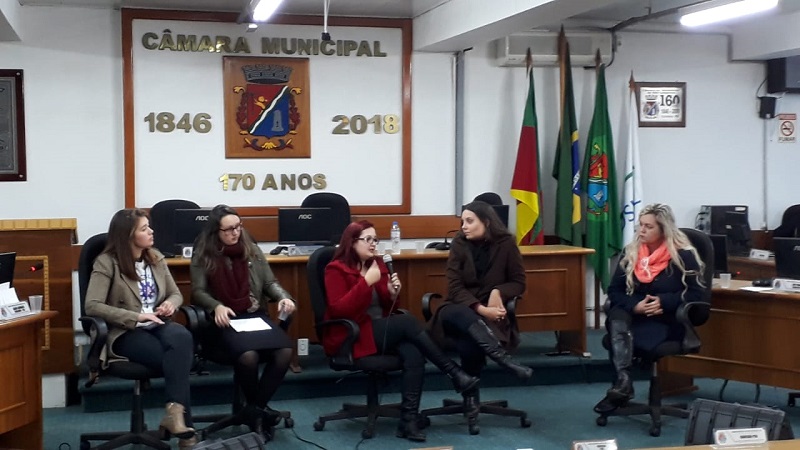 A convite da direção do Hospital Centenário de São Leopoldo, a enfermeira obstetra Camila Borba da Luz, a enfermeira neonatal Michele Ferreira e a médica obstetra Paula Irigoyen de Freitas, da Linha de Cuidado Mãe-Bebê do Hospital Conceição, participaram de evento, nesta terça-feira, 19 de junho, na Câmara de Vereadores do município, sobre Atenção à Humanização do Parto. As profissionais compartilharam a experiência da assistência humanizada ao parto, desenvolvida no Hospital Conceição, e destacaram a importância do modelo colaborativo entre os médicos e enfermeiras obstetras para qualificar a assistência. Ao final do evento, foi aberto espaço de discussões, em que os profissionais da saúde do município do Vale dos Sinos demonstraram interesse em ampliar as trocas de experiências com o Hospital Conceição.
