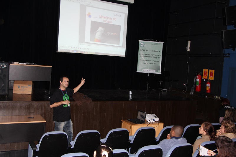 A Semana Interna de Prevenção de Acidentes (Sipat) realizada pelas Comissões Internas de Prevenção de Acidentes (Cipa) dos Hospitais Conceição (HNSC), Criança Conceição (HCC) e da Central de Logística e Suprimentos (Celog) do Grupo Hospitalar Conceição (GHC) promoveu palestra sobre “Malefícios Causados pelo Uso do Cigarro”, com o palestrante Jeferson Luiz Gomes, vice-presidente da Cipa e membro da Comissão de Controle do Tabagismo do GHC. O evento reuniu cerca de 50 pessoas no Auditório do Instituto da Criança com Diabetes (ICD), nesta quarta-feira, dia 25 de julho.