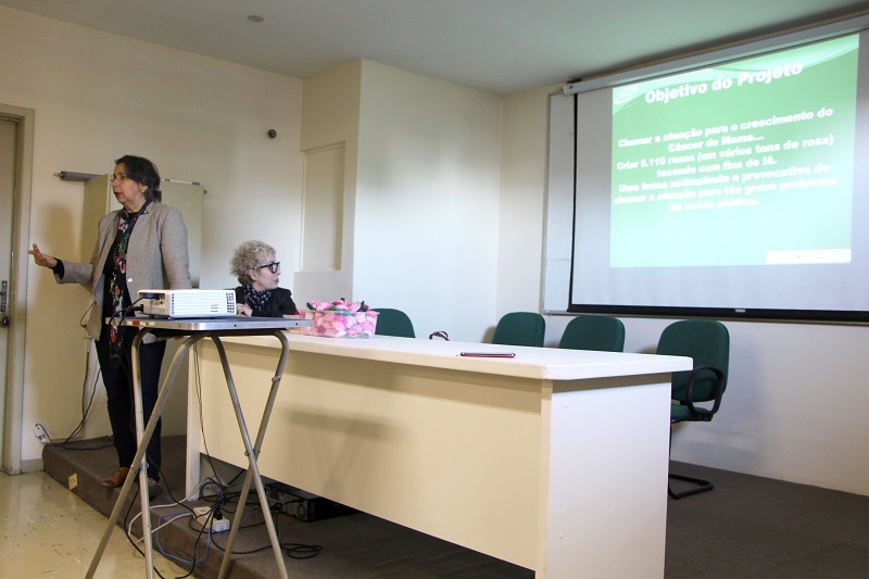 Foi lançado nessa terça-feira, 14 de agosto, no auditório do Hospital Fêmina (HF), o projeto Bombardeio de Fios. Idealizado pela médica da UTI Neonatal do HF Suzete Saraiva e com apoio das gerências do hospital, o projeto busca ornamentar as áreas externas e de circulação do Fêmina com 5.110 rosas confeccionadas em lã. O objetivo é chamar atenção para o câncer de mama. O número de rosas é o mesmo previsto pelo Instituto Nacional do Câncer (Inca) para novos casos de câncer de mama no Rio Grande do Sul em 2018.