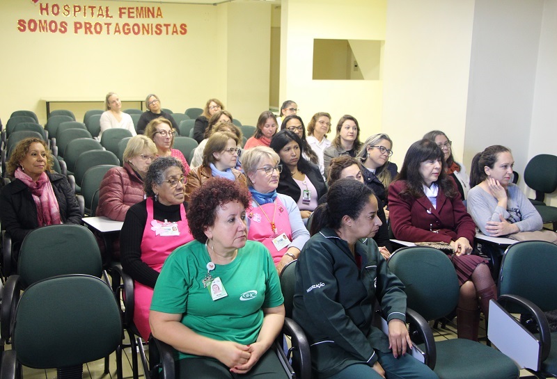 Participaram do lançamento do projeto a gerente de Administração do HF, Denise Maria Jornada Braga, a médica da UTI Neonatal do Hospital Fêmina Suzete Saraiva, a técnica administrativa responsável pelo suporte à ação, Joana Jobim, e funcionárias do hospital. Na abertura, Denise Maria Jornada Braga falou com entusiasmo sobre o projeto. "A ideia é fazer disso um alerta de saúde e lembrar as nossas mulheres da importância do diagnóstico precoce", pontuou a gerente. "O tempo é o que temos de mais importante para ofertar às pessoas", falou a médica proponente da ação, Suzete Saraiva. Ela lembrou que a prática de tecer fios é comum entre os funcionários da UTI Neonatal do HF com a finalidade de produzir sapatinhos e tocas para os recém-nascidos.