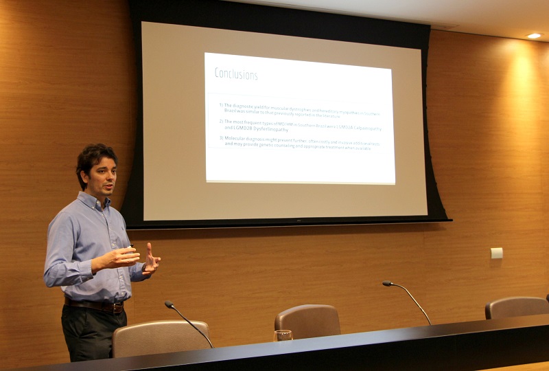 A palestra “Investigando a Criança com Fraqueza Muscular”, com o palestrante Vitor Félix Torres, médico neurologista e neurofisiologista clínico do GHC, abriu as atividades do seminário. Ele abordou a identificação e o diagnóstico da doença nas crianças. Em seguida, o médico neurologista e neurofisiologista do Hospital de Clínicas de Porto Alegre Pablo Brea Winkler, especialista em doenças neuromusculares, apresentou a palestra “Falando sobre Distrofia Muscular”, em que mostrou um panorama da doença no Hospital Clínicas, estudos sobre distrofia muscular e como funciona o processo do diagnóstico da doença.