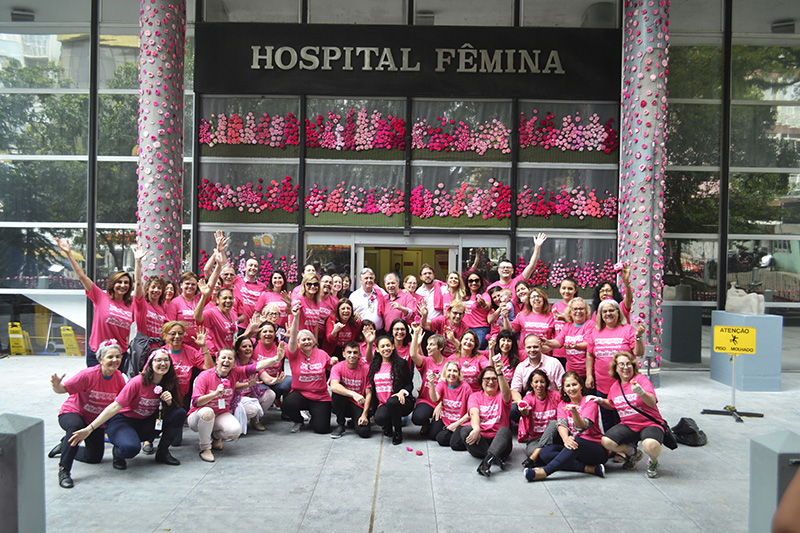 Pelo projeto Bombardeio de Fios, realizado durante as comemorações do Outubro Rosa, inspirado na técnica Yarn Bombing (arte de rua), o Hospital Femina realiza uma mostra de mais de 16,6 mil flores cor de rosa tecidas em lã por funcionários, pacientes e voluntários para conscientizar as mulheres para a prevenção do diagnóstico precoce do câncer de mama.