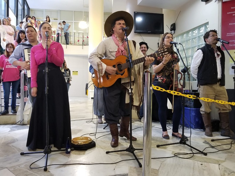 O Hospital Fêmina promoveu, na manhã desta quarta-feira, 31 de outubro, um show com o cantor nativista Elton Saldanha. A atividade foi realizada em celebração ao encerramento das atividades do projeto Bombardeio de Fios, durante o Outubro Rosa.