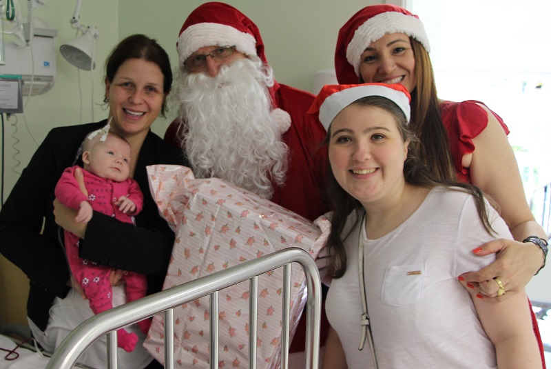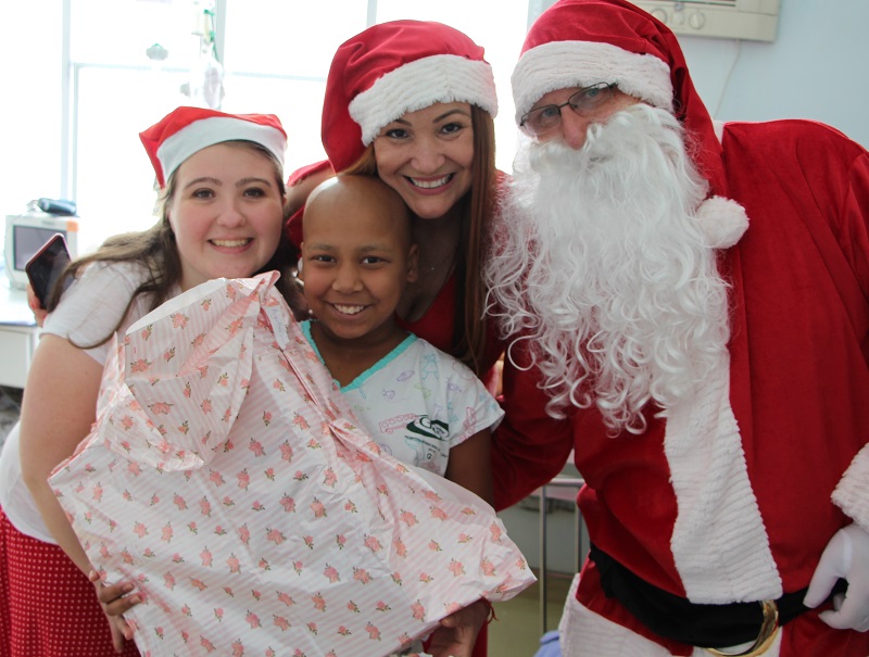 Época de Natal costuma ser de alegria para os pequenos, e mais uma vez as crianças presentes no ambulatório e internação da Onco-Hematologia do Hospital Criança Conceição (HCC) ganharam presentes e muito carinho na manhã desta quarta-feira, 19 de dezembro. A ação foi promovida pelos voluntários Vinicius Giordani, vestido de Papai Noel e suas ajudantes Lis Barreto e Paula Campos.
