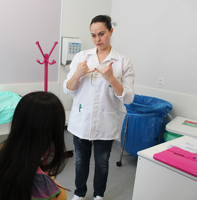 O entendimento do que estava ocorrendo no ambiente fez com que a paciente ficasse tranquila durante o procedimento, facilitando também o trabalho da equipe de saúde do hospital. “Não é somente a interpretação em Libras, mas também conseguir ter a tranquilidade de passar para a paciente interpretar tudo que está acontecendo, se está tudo de acordo com a normalidade”, apontou Monise sobre o acompanhamento a Paolla.