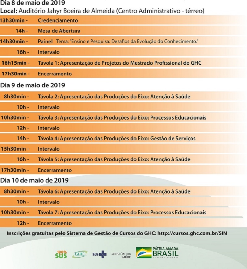 As inscrições dos trabalhos devem ser feitas pelo site http://ensinoepesquisa.ghc.com.br. Mais informações podem ser obtidas pelos telefones (51) 3255.1699 ou 3255-1893. As inscrições para a jornada são pelo site http://cursos.ghc.com.br/SIN.
