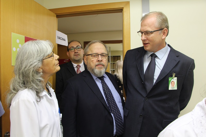Neste ano, a abertura da Campanha de Vacinação para os funcionários do Grupo Hospitalar Conceição contra a influenza, nesta segunda-feira, 29 de abril, contou com a presença do diretor-superintendente do GHC, André Cecchini, do diretor técnico, Francisco Paz, e do diretor administrativo financeiro, Cláudio Oliveira, que prestigiaram esta ação importante para a instituição e que é promovida pela equipe da Saúde do Trabalhador.
