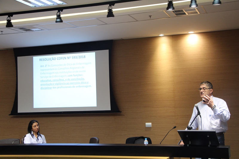 Foi realizado nessa segunda-feira, 6 de maio, no Auditório Jahyr Boeira de Almeida, no Centro Administrativo do Grupo Hospitalar Conceição (GHC), seminário que visou discutir questões éticas pertinentes aos profissionais de Enfermagem. O evento foi organizado pela Comissão de Ética de Enfermagem do Hospital Conceição e teve como público-alvo os enfermeiros, técnicos, auxiliares e residentes de Enfermagem do Grupo Hospitalar Conceição e estudantes de Enfermagem.