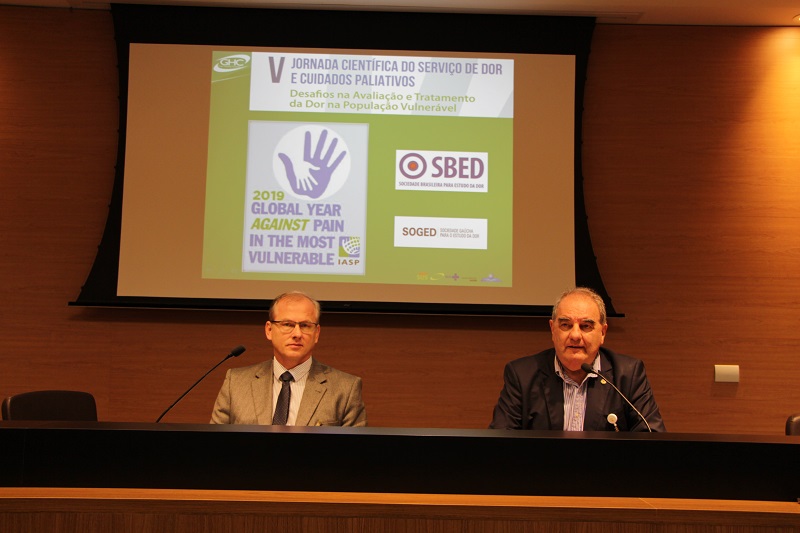 Foi realizada na manhã dessa terça-feira, 25 de junho, no Auditório Jahyr Boeira de Almeida, no Centro Administrativo GHC, a 5ª Jornada Científica do Serviço de Dor e Cuidados Paliativos. A atividade teve como objetivo discutir assuntos relacionados aos desafios na avaliação e tratamento da população vulnerável, além de ser alusivo ao ano global da dor nas populações vulneráveis, segundo a International Association for the Study of Pain/Associação Internacional de Estudo da Dor (IASP - deficiências físicas, psicológicas, verbais ou que estão em vulnerabilidade social).