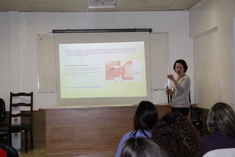 O curso de Manejo, Incentivo e Promoção da Amamentação é realizado a cada dois meses para funcionários envolvidos nos cuidados mãe-bebê e demais funcionários do Grupo Hospitalar Conceição.