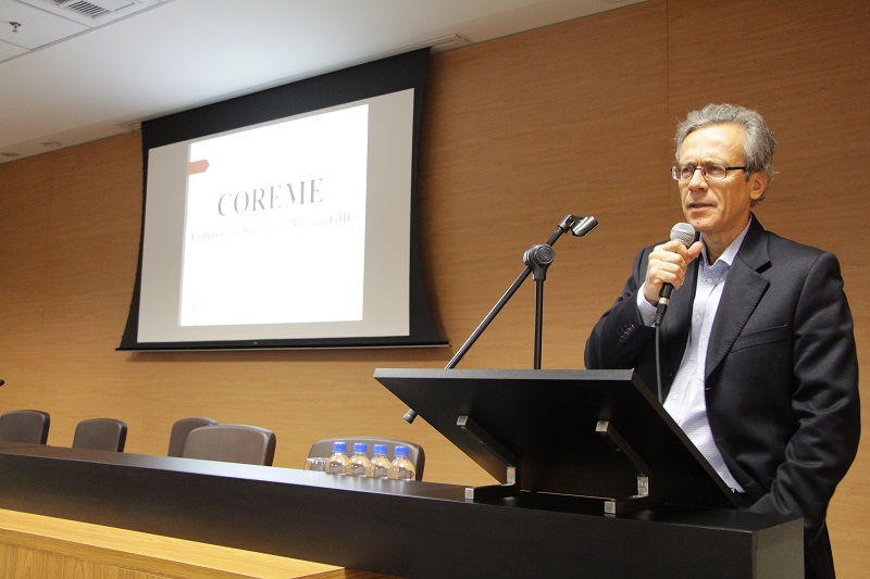 O diretor técnico do GHC, Francisco Paz, e o diretor administrativo e financeiro, Cláudio Oliveira, também estiveram presentes no encontro, que reuniu gerentes, coordenadores, assistentes de coordenação e representantes das associações. Na ocasião, foram apresentados ainda o projeto Saúde em Nossas Mãos, com o médico intensivista do HCR André Braun, a Comissão de Residência Médica do GHC (Coreme), com o preceptor coordenador das especialidades clínicas, Eduardo Fernandes, e o Voluntariado do GHC com a coordenadora da Participação Cidadã, Vera Beatriz Soares da Cruz, e a assessora da Diretoria Maribel Flores.