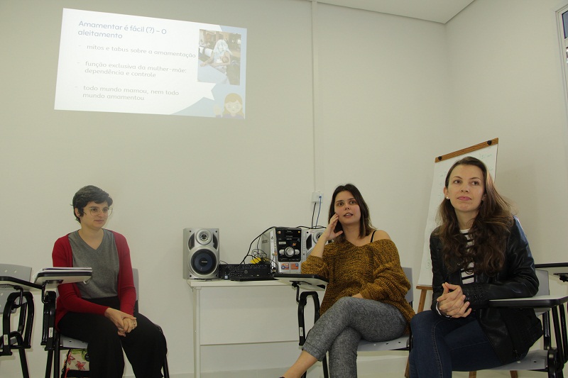 Com a proposta de promover e fortalecer as práticas do aleitamento materno, o Grupo Hospitalar Conceição (GHC), realizou na manhã desta quarta-feira, dia 7 de agosto, na sala 13 da Escola GHC, a roda de conversa “Criação com apego”. O evento, direcionado às profissionais do GHC, contou com a palestra das residentes Aline Schwalm Andrade, Marcella Leivas e Mariana Zabot, que tiraram dúvidas sobre o assunto. Foi realizado também um momento de troca de experiências entre as palestrantes e o público presente.