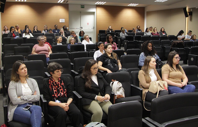 Em seguida, a enfermeira da Linha de Cuidado Mãe-Bebê do Hospital Conceição Dinara Dornfeld comentou sobre a amamentação no parto e no alojamento conjunto. Ela apresentou o novo modelo de atenção no parto humanizado, que traz a presença de um acompanhante para a mãe, seja ele o pai, algum membro da família ou amigos.