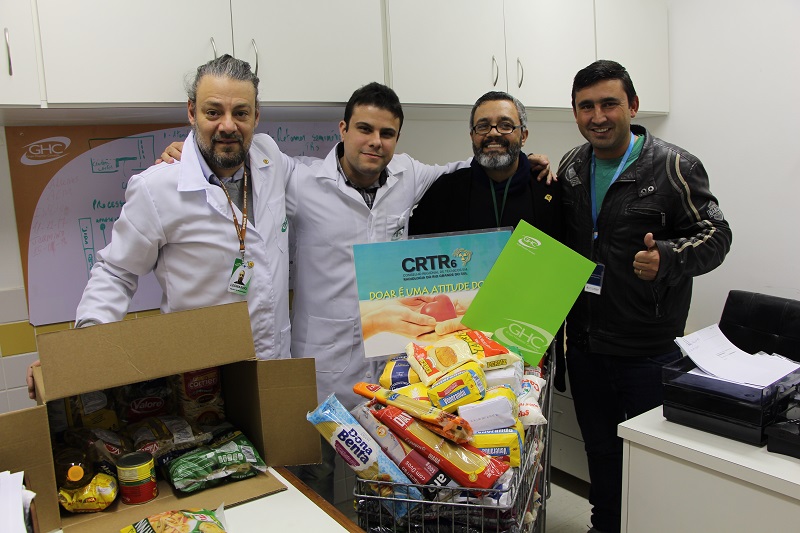 O Serviço de Imagem da Gerência de Unidades de Internação do Hospital Cristo Redentor (GUI/HCR) realizou na última na sexta-feira, dia 23 de agosto, a entrega de 80 quilos de alimentos para o Centro Social Marista - Irmão Antônio Bortolini. Os itens alimentícios, entre eles arroz, massa e feijão, foram arrecadados durante o Ciclo de Palestras, realizado pelo Serviço de Imagem e o Conselho Regional de Técnicos em Radiologia 6° Região (CRTR), no dia 20 de agosto, no Anfiteatro do HCR. Este evento consiste em palestras com profissionais especializados em Radiologia.