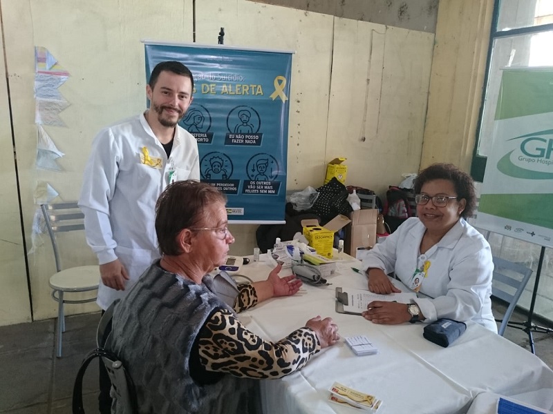 Profissionais de enfermagem do Grupo Hospitalar Conceição participaram no último sábado, dia 28 de setembro, do Brechó da Solidariedade Lions, promovido pelo Lions Clube de Porto Alegre Barão do Cahy, no Centro Vida Humanístico. A ação foi voltada a pessoas carentes e contou, entre outros, com a realização de exames de detecção de diabetes e de pressão arterial. Alunos do Curso Técnico em Enfermagem da Escola GHC também participaram das atividades.