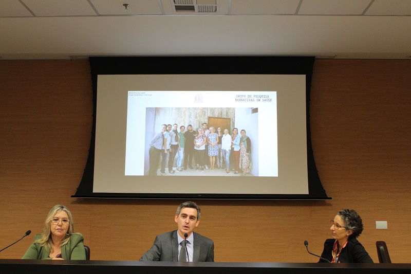 A terapeuta e membro do GNS/GHC Marta Orofino, ao abrir o evento, agradeceu as parcerias com as gerências de Ensino e Pesquisa do GHC e de Saúde Comunitária do Hospital Conceição pelo apoio prestado ao trabalho do GNS/GHC. A gerente de Saúde Comunitária do HNSC, Helena Cunha, falou sobre sua expectativa para o evento. "Que consigamos discutir a importância da narrativa de outras metodologias que temos de movimentar e trazer questionamentos para a saúde das pessoas", falou a gerente.