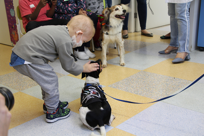 Na manhã dessa quarta-feira, 9 de outubro, foi realizada, no ambulatório de Hematologia e Oncologia do Hospital Criança Conceição (HCC), mais uma sessão de pet-terapia com os pacientes. Marcado pelo contato humanizado entre as crianças com os cães Buzz e Billy, o projeto é uma iniciativa do Instituto do Câncer Infantil (ICI), que proporciona encontros mensais entre os pacientes do serviço com os animais.