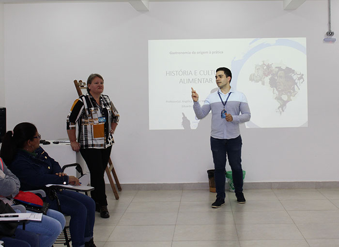 Foi realizado, nesta quarta-feira, 16 de outubro, na Escola do Grupo Hospitalar Conceição (GHC), o 1° Curso de Extensão em Gastronomia da Origem à Prática. A atividade é uma parceria com a Unisinos e conta com aulas teóricas e práticas, que serão realizadas no laboratório de culinária da Universidade. O curso terá seis encontros com duração de 4h, totalizando 24h, com término previsto em 20 de novembro. A atividade possui um total de 20 alunos, entre eles nutricionistas, atendentes de nutrição, técnicos em nutrição e cozinheiros dos serviços de Nutrição do GHC.