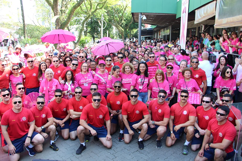 Em clima festivo e de integração, foi realizada na manhã desta sexta-feira, 25 de outubro, a 11ª Caminhada Mulher Consciente do Hospital Conceição (HNSC). Promovida pelo Setor de Mastologia do HNSC e pelas voluntárias do Grupo da Mama Conceição, a atividade busca conscientizar para o diagnóstico precoce e prevenção do câncer de mama. Com camisetas e adereços cor-de-rosa, o público teve concentração em frente ao hospital, onde assistiu ao show artístico do humorista Guri de Uruguaiana, do MC Jean Paul, do cantor Cris Fagundes e do coral Um Novo Horizonte do Centro de Convivência e Profissionalização (Ceconp/Fase). O momento proporcionou a animação de todos. Como tradicionalmente já ocorre, os bombeiros também participaram, incentivando as mulheres.