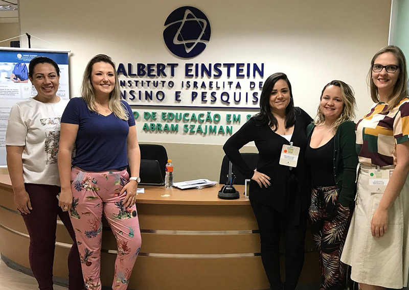 Nos dias 30 e 31 de outubro, as profissionais da Gestão de Riscos Graciele Mallmann da Silva, Stephanie Greiner e Laura dos Santos, Flávia Pacheco, assistente de coordenação da Medicina Interna, e Gabriela Garcia de Oliveira, assistente de coordenação do Centro de Diagnóstico por Imagem, participaram do Curso Qualidade e Segurança em Saúde com Simulação Realística. O curso ocorreu no Centro de Simulação Realística do Hospital Israelita Albert Einstein (CSR) na cidade de São Paulo. No curso, foram abordados temas sobre Qualidade em Saúde, Gestão de Riscos e Segurança do Paciente. A iniciativa ocorre periodicamente, e a ANVISA disponibiliza vagas para as instituições que fazem parte da rede sentinela com o objetivo de fortalecer as ações de Gestão de Risco.