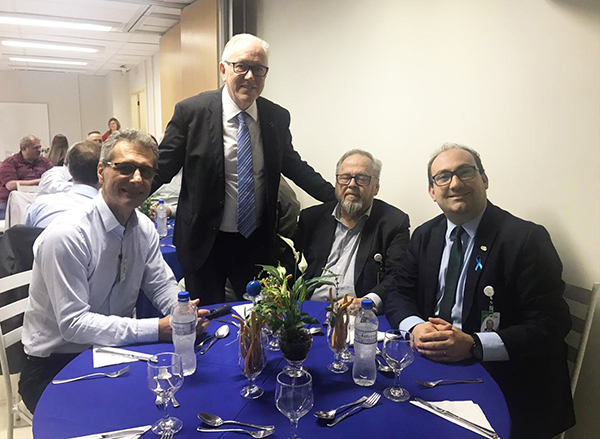 Os diretores do Grupo Hospitalar Conceição Cláudio Oliveira e Francisco Paz participaram nessa terça-feira, 5 de novembro, do almoço em comemoração aos 15 anos de atendimento do Instituto da Criança com Diabetes. Oliveira e Paz estavam acompanhados da gerente de Internação do Hospital Criança Conceição, Lúcia de Fontoura Osório, e foram recebidos pelo diretor-presidente do ICD, Balduíno Tschiedel.