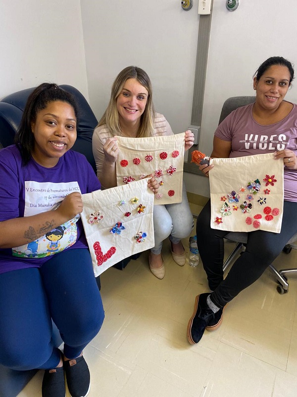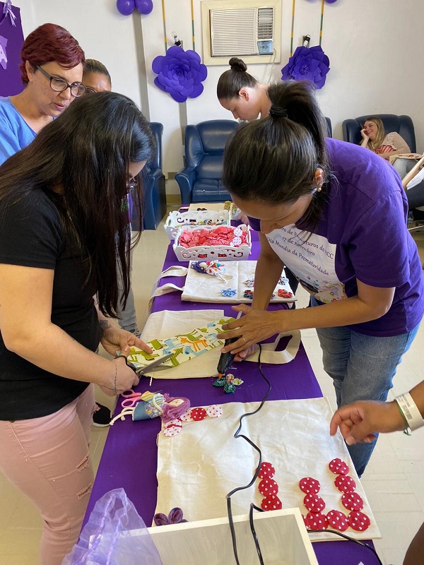 No dia 12, dentro também da Semana da Prematuridade do HCC, foi realizada a Oficina de Artesanato. Na atividade, as mães confeccionaram bolsas ecológicas para seus bebês. A atividade teve como objetivo a integração das mães e criar um momento de descontração.