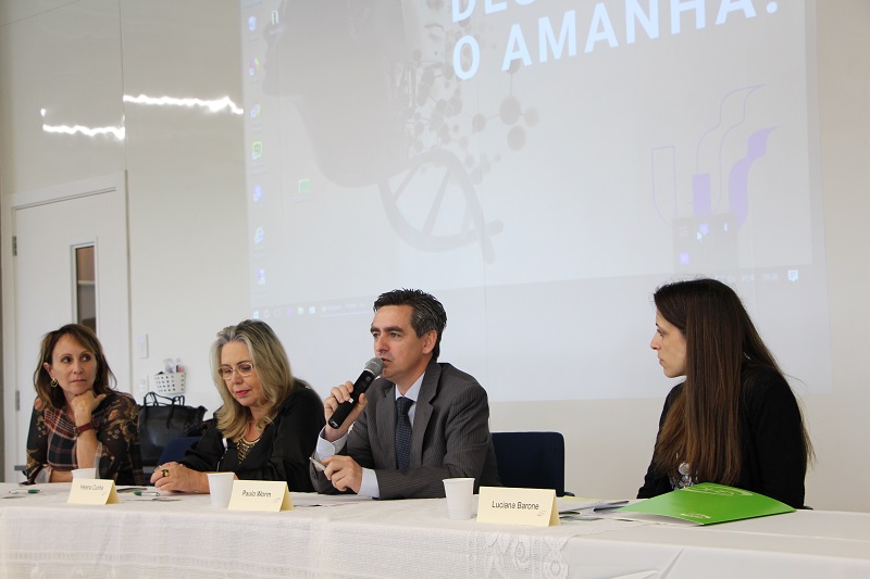 Após a mesa de abertura, foi realizado o “Painel: Rumos da Integração Ensino-Serviço”, que contou com a participação da coordenadora Luciana Barone e dos convidados, responsável técnico da Medicina Comunitária, Juliano Barcellos, responsável técnico da Odontologia Egídio DeMarco, também orientadores da residência, e a professora universitária de Psicologia da UFRGS, Vera Pasini.