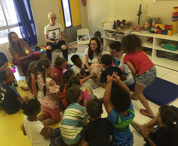 Por meio do uso de uma boneca mãe com sua bebê, as crianças também compreenderam a importância do contato pele a pele e da amamentação logo após o parto. Ao longo da atividade, curiosidades surgiram e a imaginação correu solta. Ações como esta oportunizam o necessário diálogo entre saúde e educação, no cenário do faz de conta e da diversão.