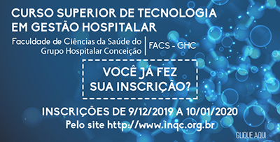 O Centro de Educação Tecnológica e Pesquisa em Saúde do Grupo Hospitalar Conceição torna público o presente edital, contendo as normas referentes ao Processo Seletivo Público para o preenchimento de vagas para discentes do Curso Superior de Tecnologia em Gestão Hospitalar, na forma subsequente ao ensino médio, nos termos das Leis nº 9.394/1996, nº 12.711/2012 e nº 13.409/2016, dos Decretos nº 5.154/2004 e nº 7.824/2012, Portaria MEC nº 413 de 11/05/2016 e da Portaria MEC nº 1537/2019 de 06/09/2019 DOU.