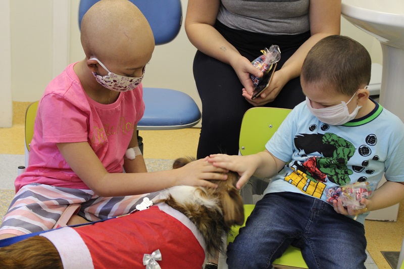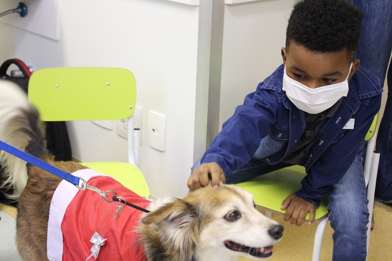 Foi realizado na manhã dessa quarta-feira, 11 de dezembro, no Ambulatório de Hematologia e Oncologia do Hospital Criança Conceição (HCC), uma sessão de pet-terapia. Marcado por brincadeiras e interação entre os pacientes e os cachorros Buzz e Billy, o projeto promove encontros mensais.