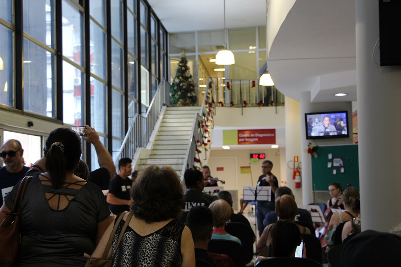 Foi realizada, na tarde da última quinta-feira, 12 de dezembro, no saguão do Hospital Fêmina (HF), a apresentação de corais em alusão ao Natal. A atividade contou com a participação da Escola de Música Sons Del’Arco, do Coral do Departamento Municipal de Água e Esgotos de Porto Alegre (Dmae) e do Coral da Igreja São Mateus.