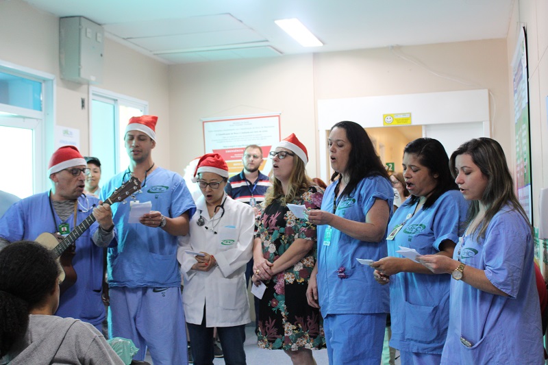 Foi realizada, na tarde da última terça-feira, 17 de dezembro, o Natal na UPA Moacyr Scliar. A atividade contou com a participação de médicos, enfermeiros e técnicos em enfermagem junto com o Coral São Lucas para entoar cânticos natalinos para pacientes e acompanhantes no saguão da Unidade de Pronto Atendimento. A ação teve como objetivo dividir a alegria no ambiente.