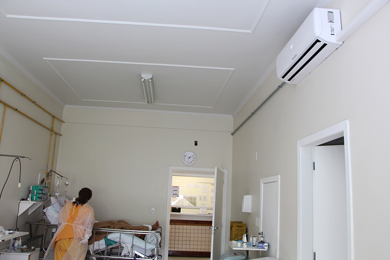 As enfermarias 3ºE, 3ºD, 4ºE e 4ºD foram climatizadas com máquinas tradicionais de ar-condicionado. O investimento é de cerca de R$ 1 milhão, entre obras e climatizadores.