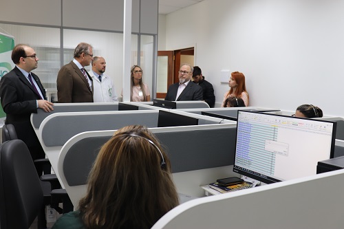 Nesta terça-feira, 11 de fevereiro, foi entregue a nova área de telefonia do Hospital Conceição (HNSC). Estiveram presentes o diretor-presidente do GHC, André Cecchini, o diretor técnico do GHC, Francisco Paz, o diretor administrativo e financeiro do GHC, Cláudio Oliveira, o gerente de Unidades de Internação do HNSC, Rafael Ribeiro, e a gerente de Administração do HNSC, Marina Machado Dias.