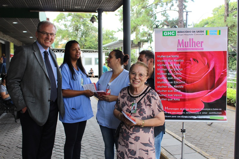 Foi realizado na manhã desta sexta-feira, 6 de março, em frente ao Hospital Nossa Senhora da Conceição (HNSC), um evento alusivo ao Dia Internacional da Mulher, que será celebrado no próximo domingo, dia 8 de março. A intenção foi conscientizar e informar funcionários do Grupo Hospitalar Conceição (GHC), pacientes e seus familiares sobre os malefícios do uso do cigarro, por meio da entrega de informativos e de orientações dadas pela Comissão de Controle do Tabagismo do GHC. Além do mais, a ação também contou com uma atenção maior ao consumo de cigarro por gestantes e perto de crianças, já que pode atrapalhar o desenvolvimento dos pequenos e até mesmo causar problemas respiratórios no futuro.