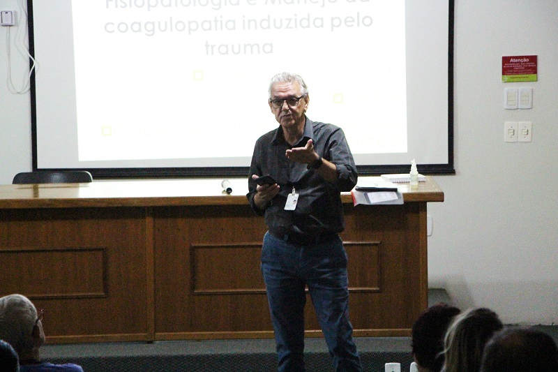 A palestra, promovida pelo Comitê Transfusional do Hospital Cristo Redentor, foi antecipada com a apresentação do coordenador, Mário Sérgio Fernandes, quando fez alguns comentários sobre a atividade deste comitê como a elaboração de protocolos institucionais, como o Protocolo de Transfusão Maciça, entre outros. A palestra de Yamauchi versou sobre a questão do trauma com alteração da coagulação – sua fisiopatologia e manejo.